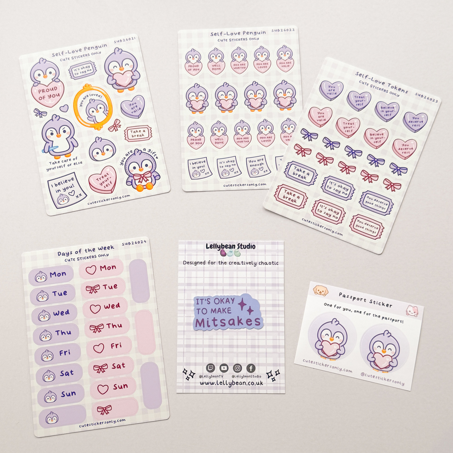 - 2x Planner sticker sheets (8.9cm x 12.6cm): could be doodle stickers or functional boxes etc