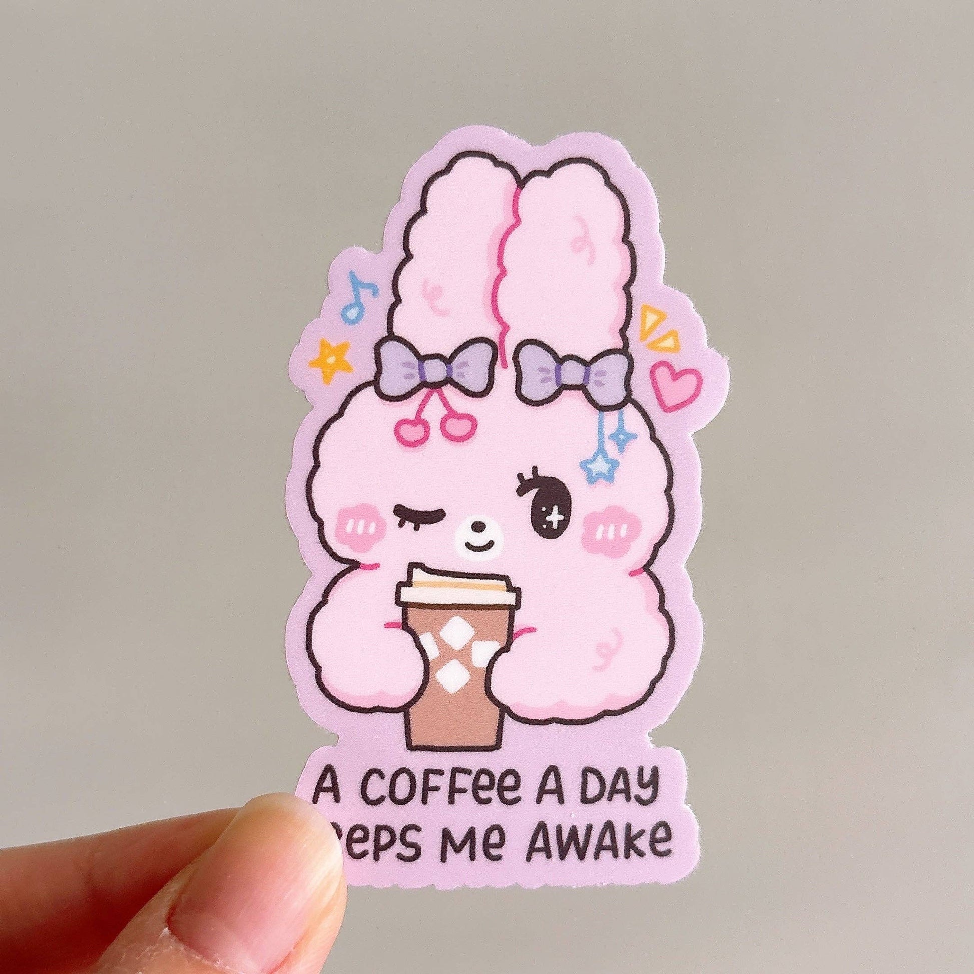 A coffee a day keeps this bunny awake! These heavy duty waterproof vinyl stickers are perfect for decorating any laptop, water bottle, iPad case, notebook cover, etc!