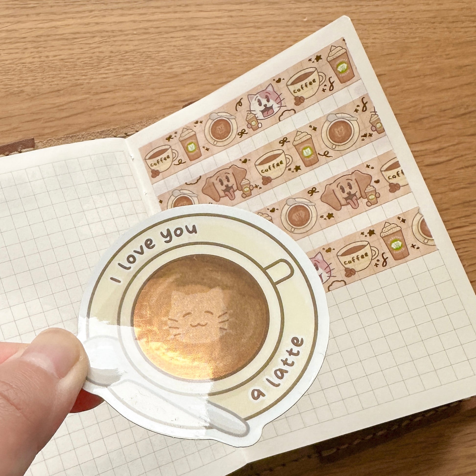 This bundle contains the "I love you a latte" peek-a-boo glitter sticker and a 15mm gold foiled washi tape.