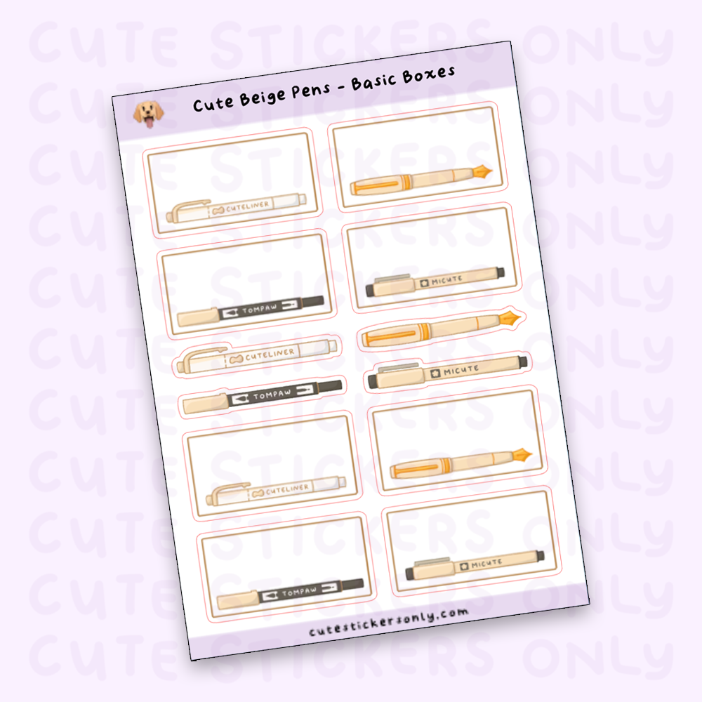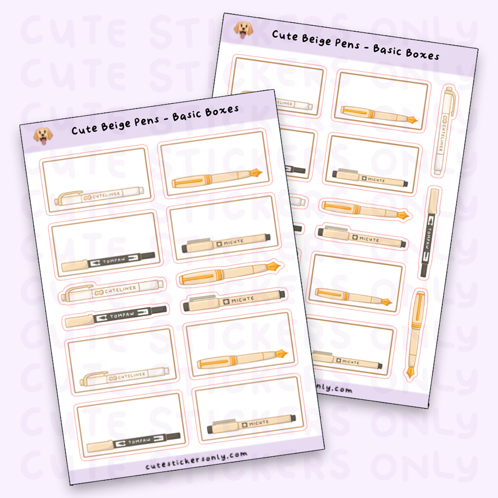 Cute Rainbow Pens - Basic Boxes Sticker Sheet