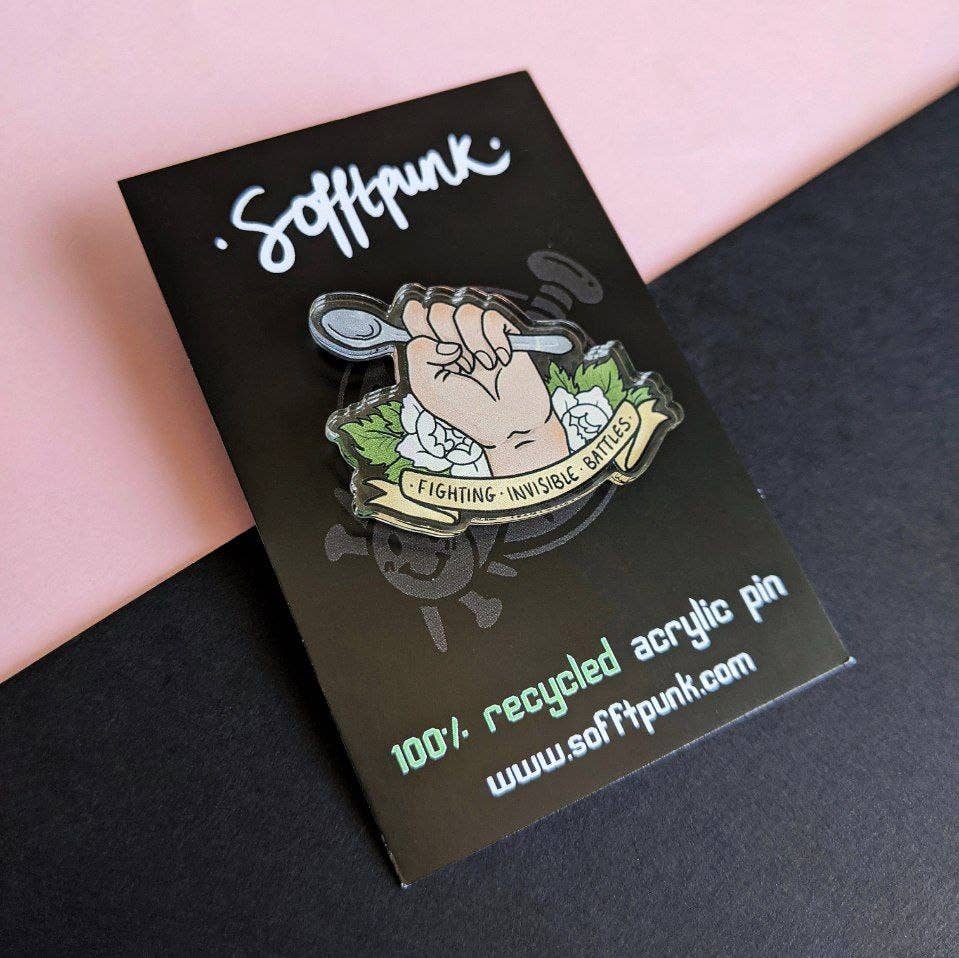 This acrylic pin features a colourful and encouraging design, celebrating the strength of all the Spoonies struggling with invisible battles. Suitable for those with a chronic illness, disability or mental health concerns, this pin helps us to be honest about what’s going on beneath the surface.