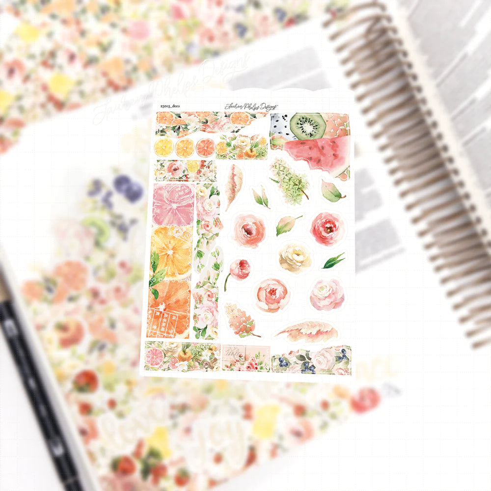 In this sticker set, you'll receive 2 sheets of deco & compositions, perfect for layering in any collage, planner or journal spread, without adding bulk.