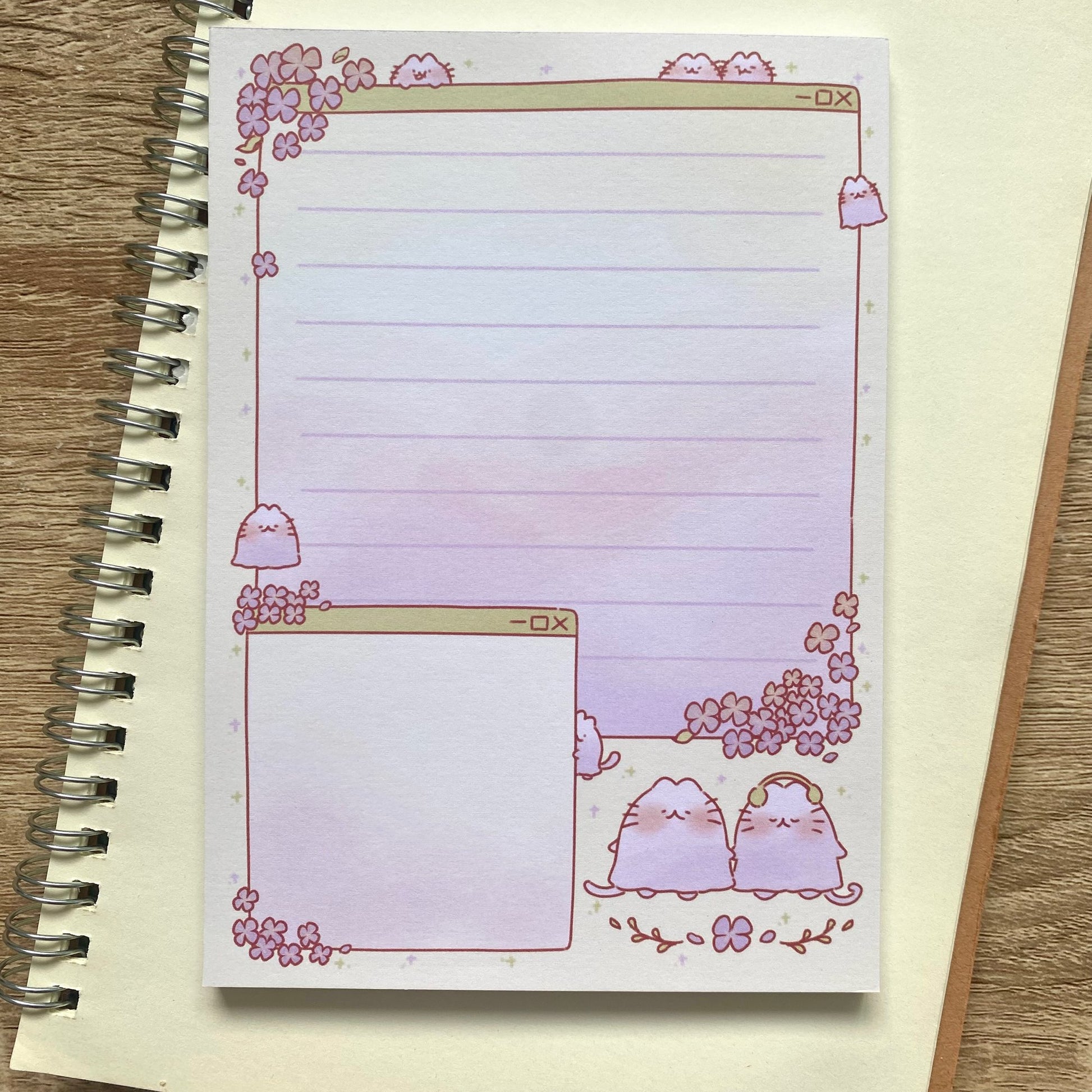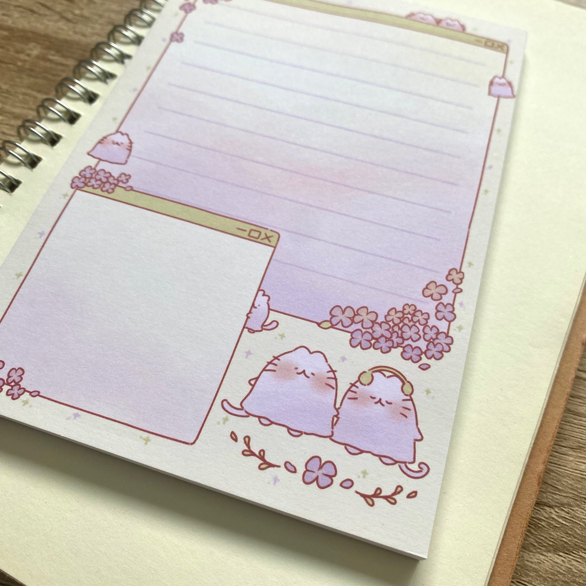 Lilac coloured notepad featuring not-so-spooky ghost kitties