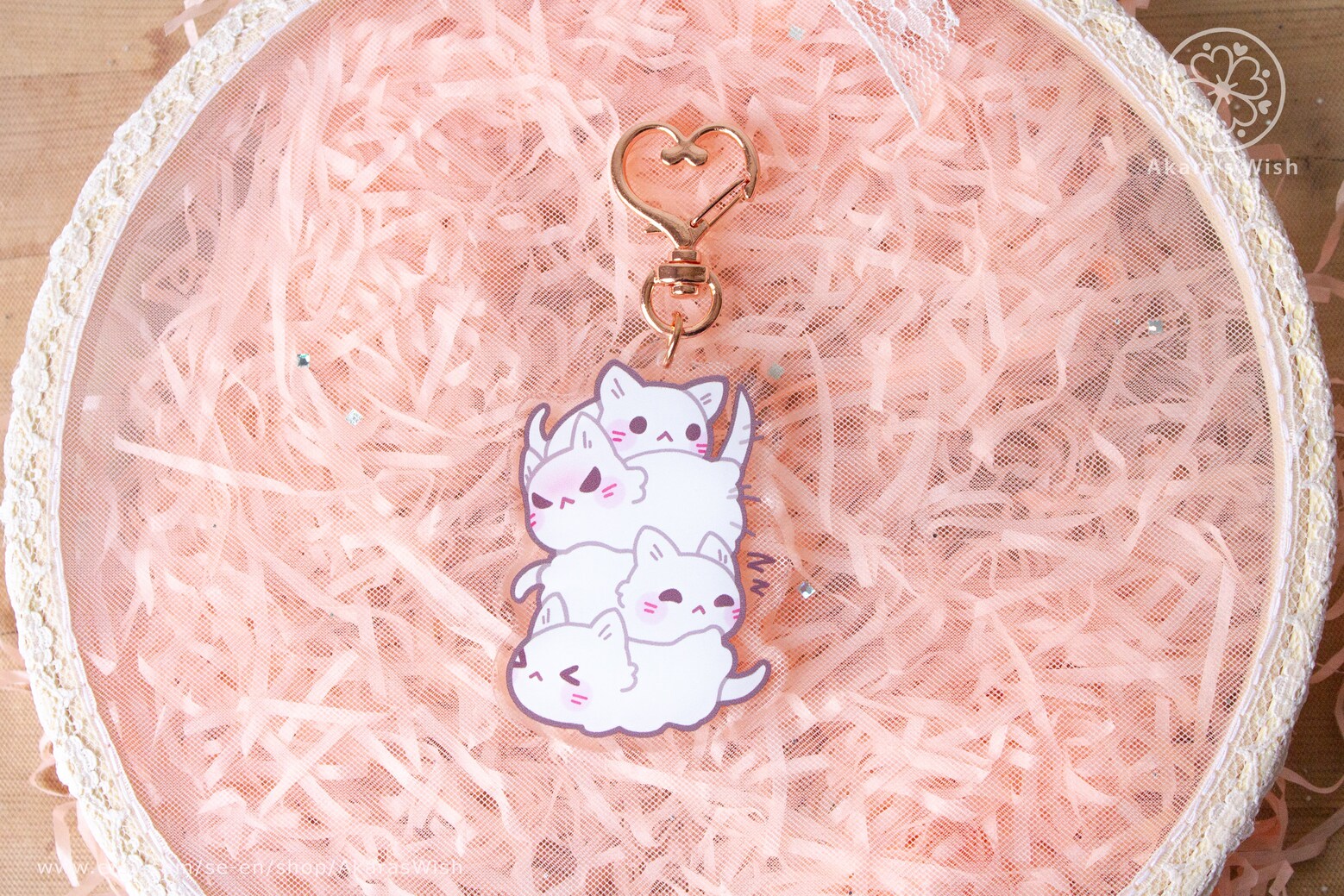 Cute holographic acrylic keychain featuring a pile of ghost kittens.