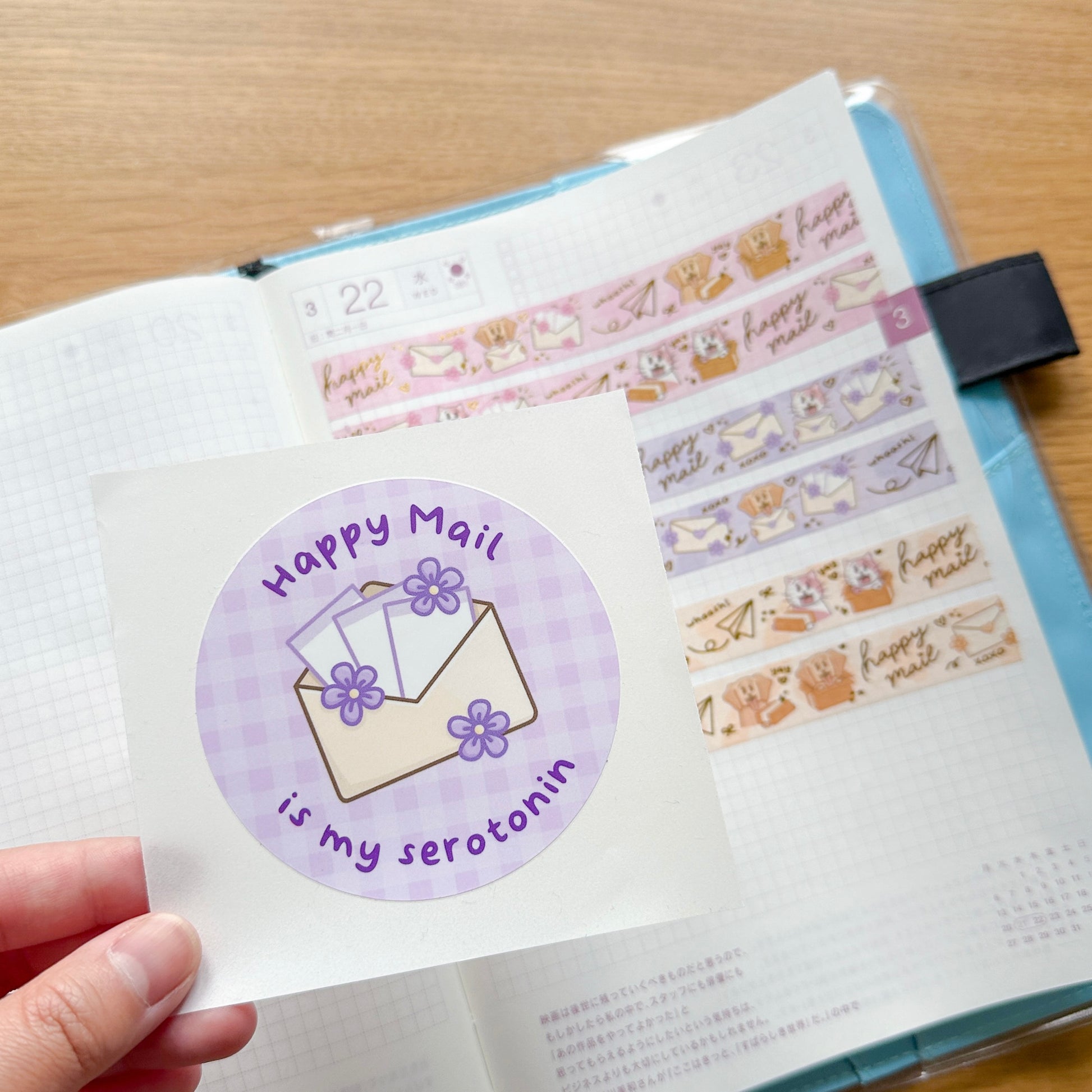 This bundle contains the "Happy mail is my serotonin" large seal sticker and a 15mm gold foiled washi tape or all three washi tapes.