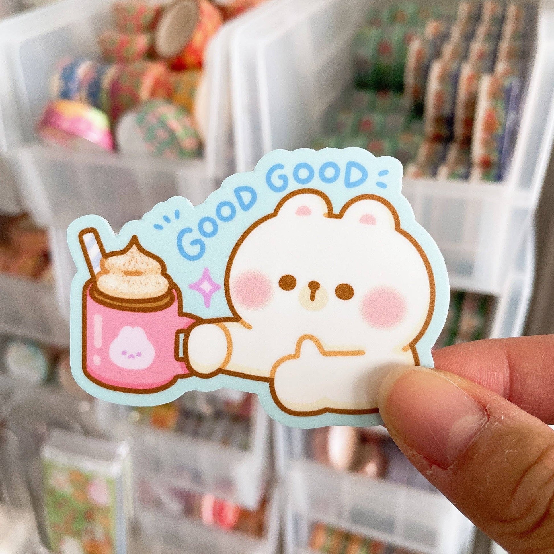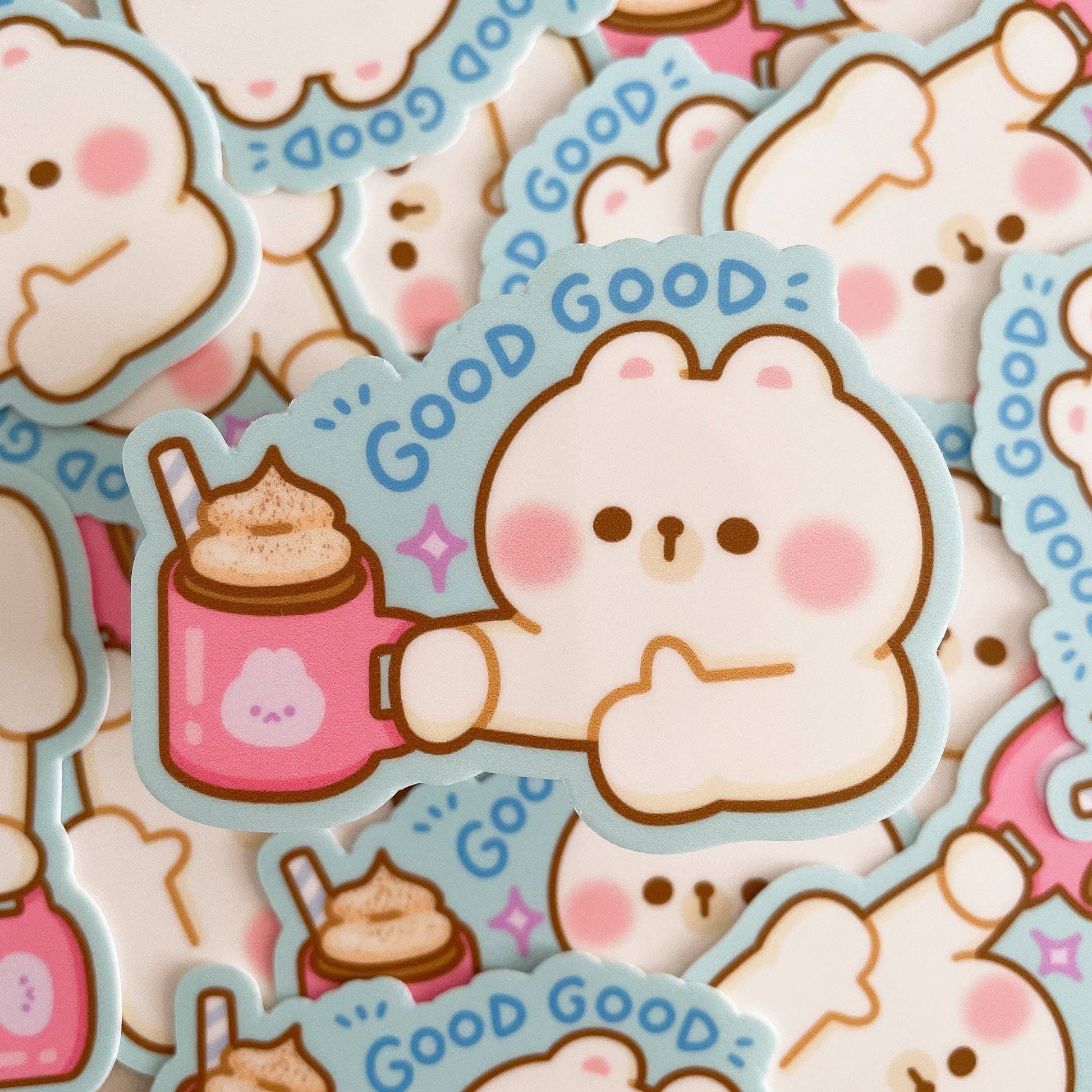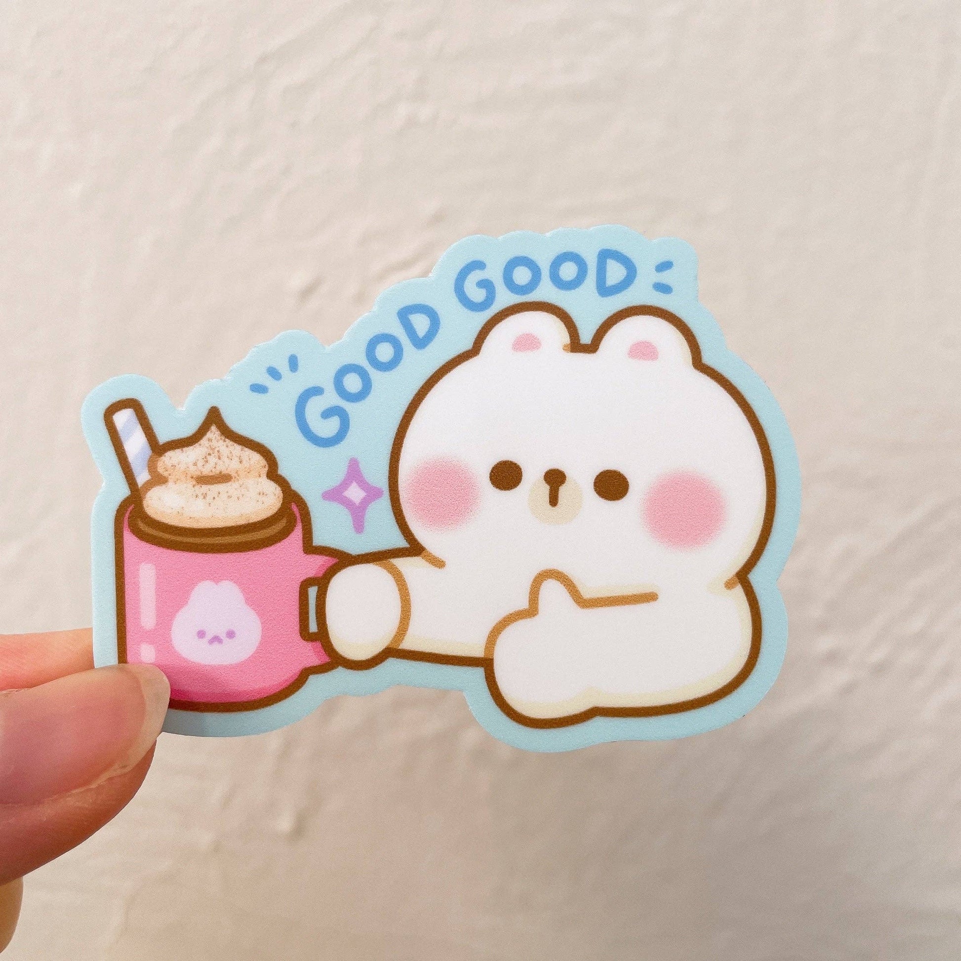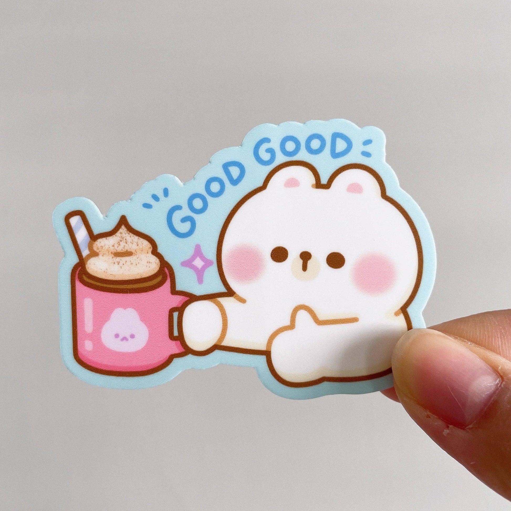 Rice the Bear says this hot chocolate (or peppermint mocha!) is good good! These heavy duty waterproof vinyl stickers are perfect for decorating any laptop, water bottle, iPad case, notebook cover, etc!