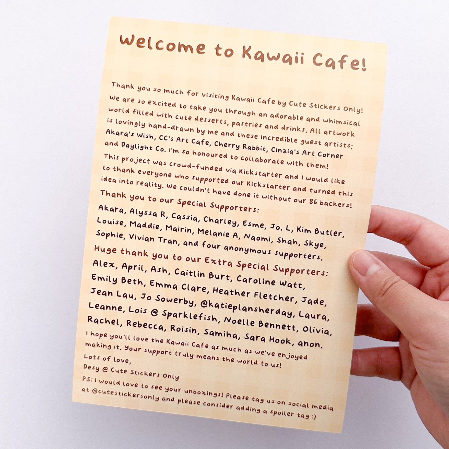 Kawaii Cafe thank you card with artwork on the front - can function as a print or be tucked underneath a clear planner cover or laminated, the sky is the limit!