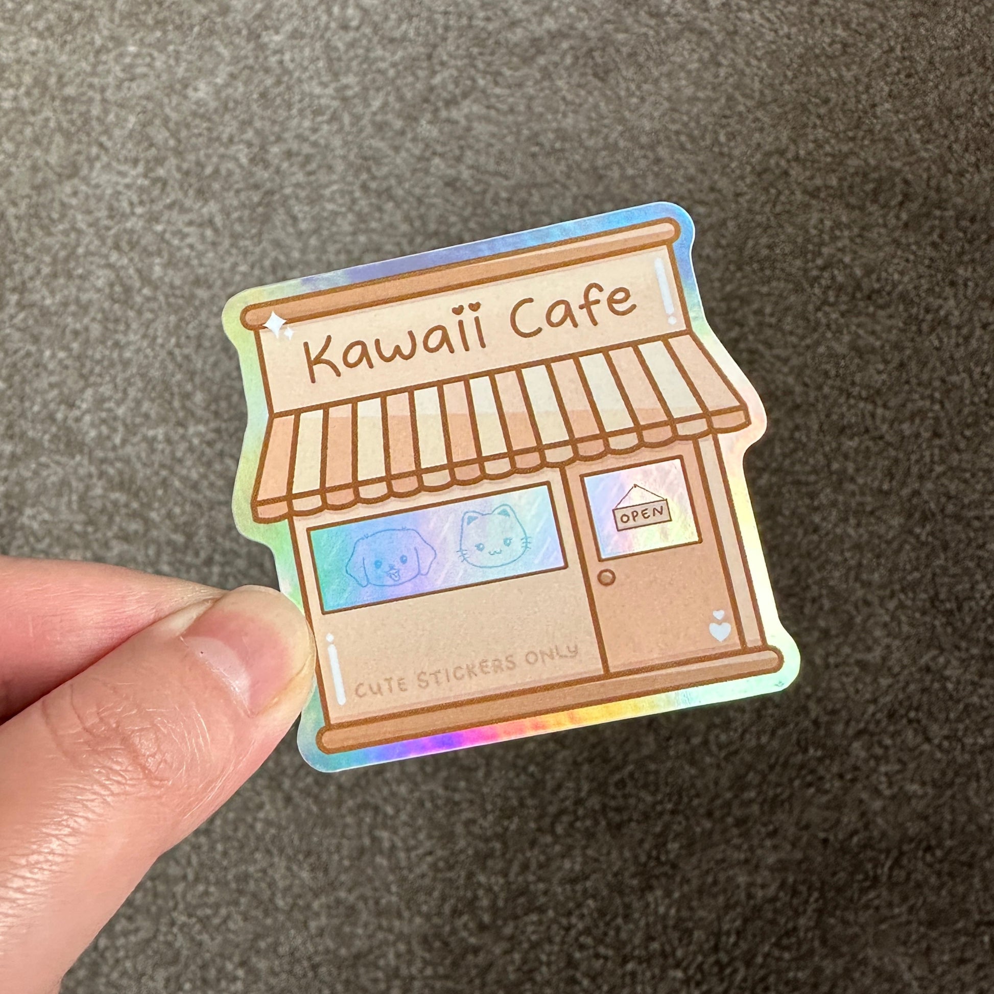 Kawaii Cafe Storefront Holographic Die Cut Sticker
