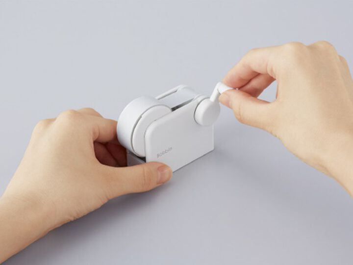 Open the main unit by pushing the release button, then stick an empty Bobbin into its designated spot. Put a washi tape into the biger roller and close the maker, then pull the washi tape and stick it to the bobbin. At last, you simply get a bobbin with tape after winding.
