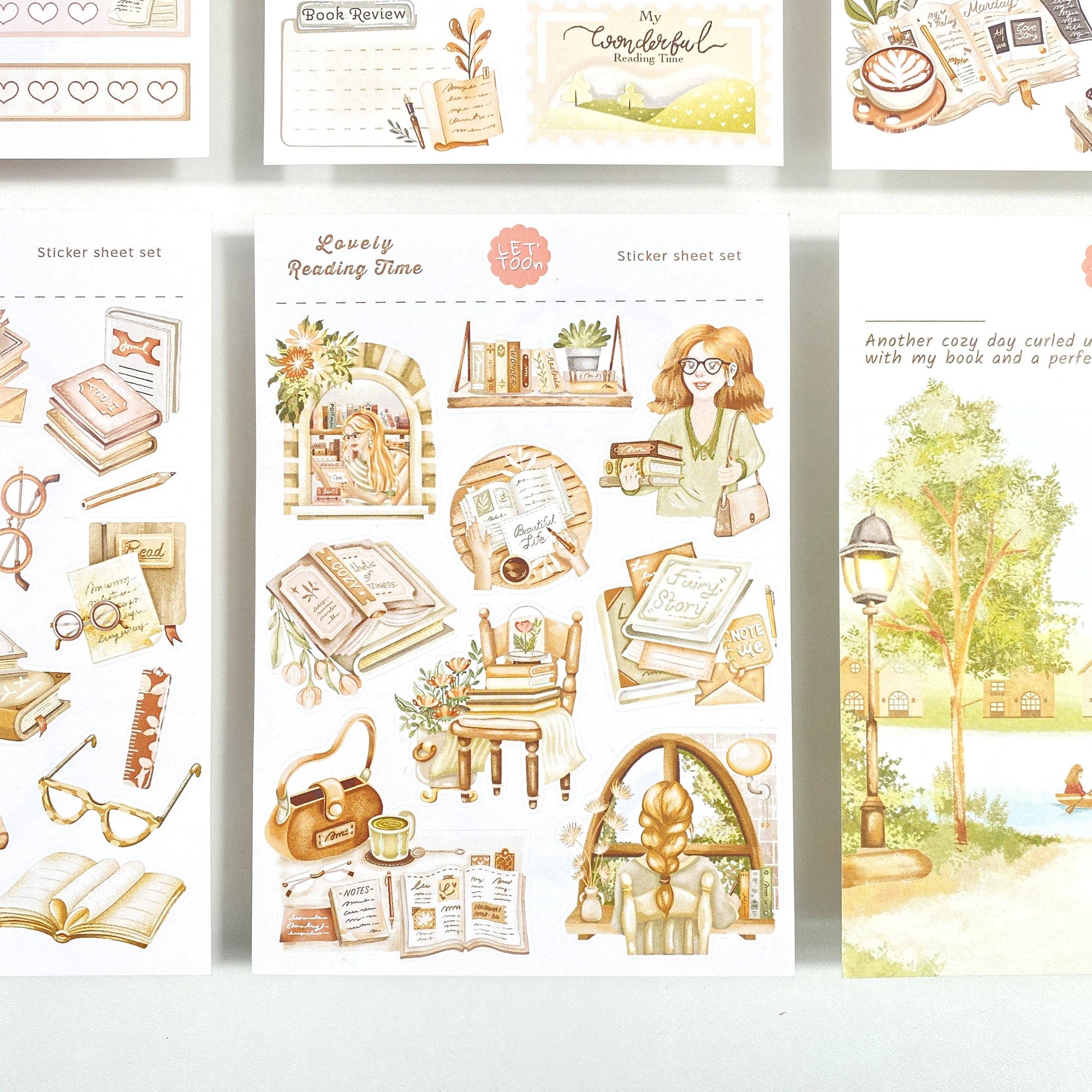Meet LETTOOn's Lovely Reading Time Sticker Set - a cozy, hand-drawn collection made just for people who love books! This set includes five different sticker sheets, each filled with beautiful bookish designs and gorgeous scenes. Every single sheet is handmade by LETTOOn, from printing and cutting to packing, so you know it’s made with care and attention to detail.