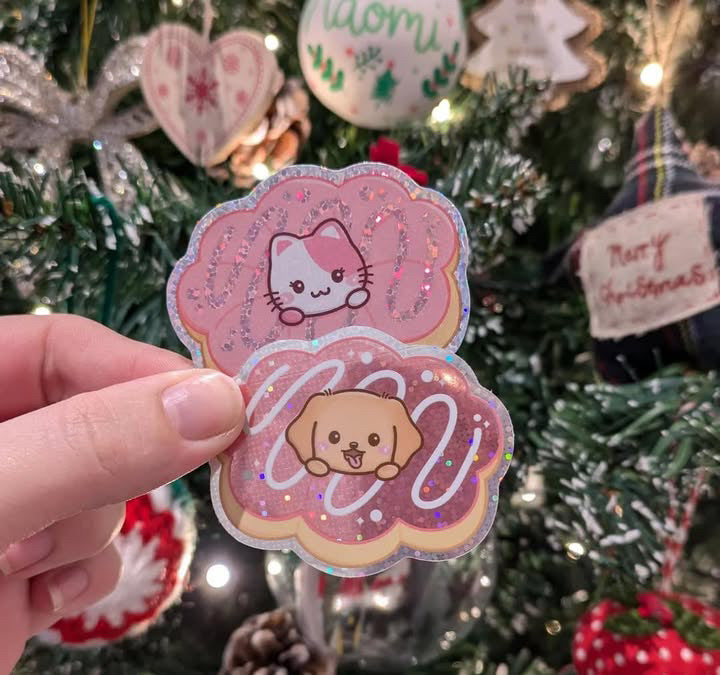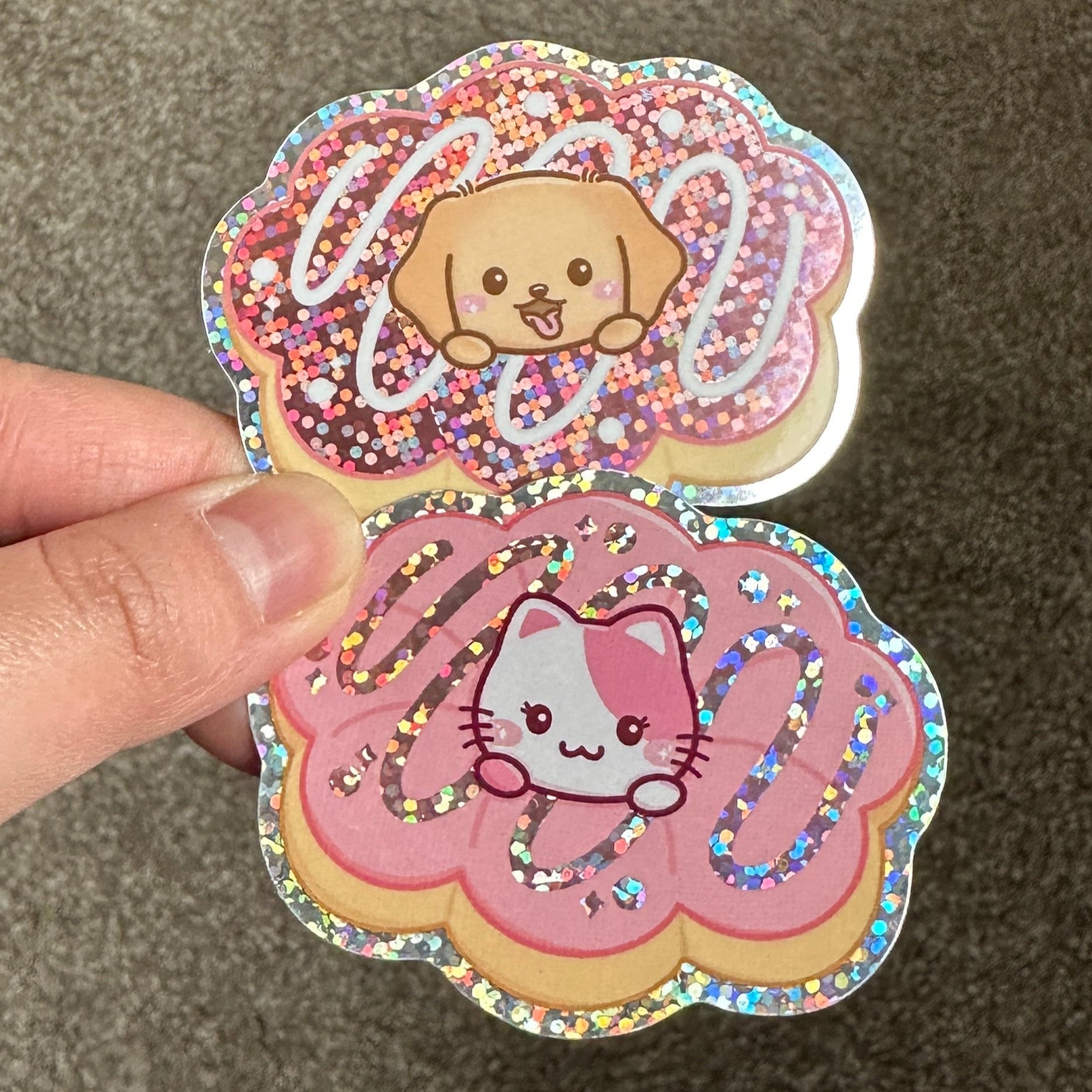 Strawberry Mochi Donuts Glitter Die Cut Stickers