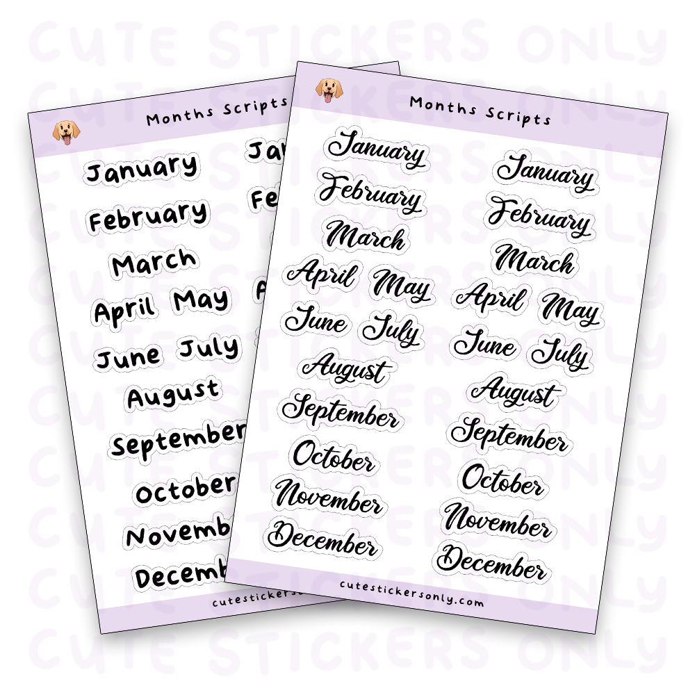 Please note that mockups are not currently available for the individual months but the height of the stickers will be the same and we will try to fit as many scripts as possible within one sheet.