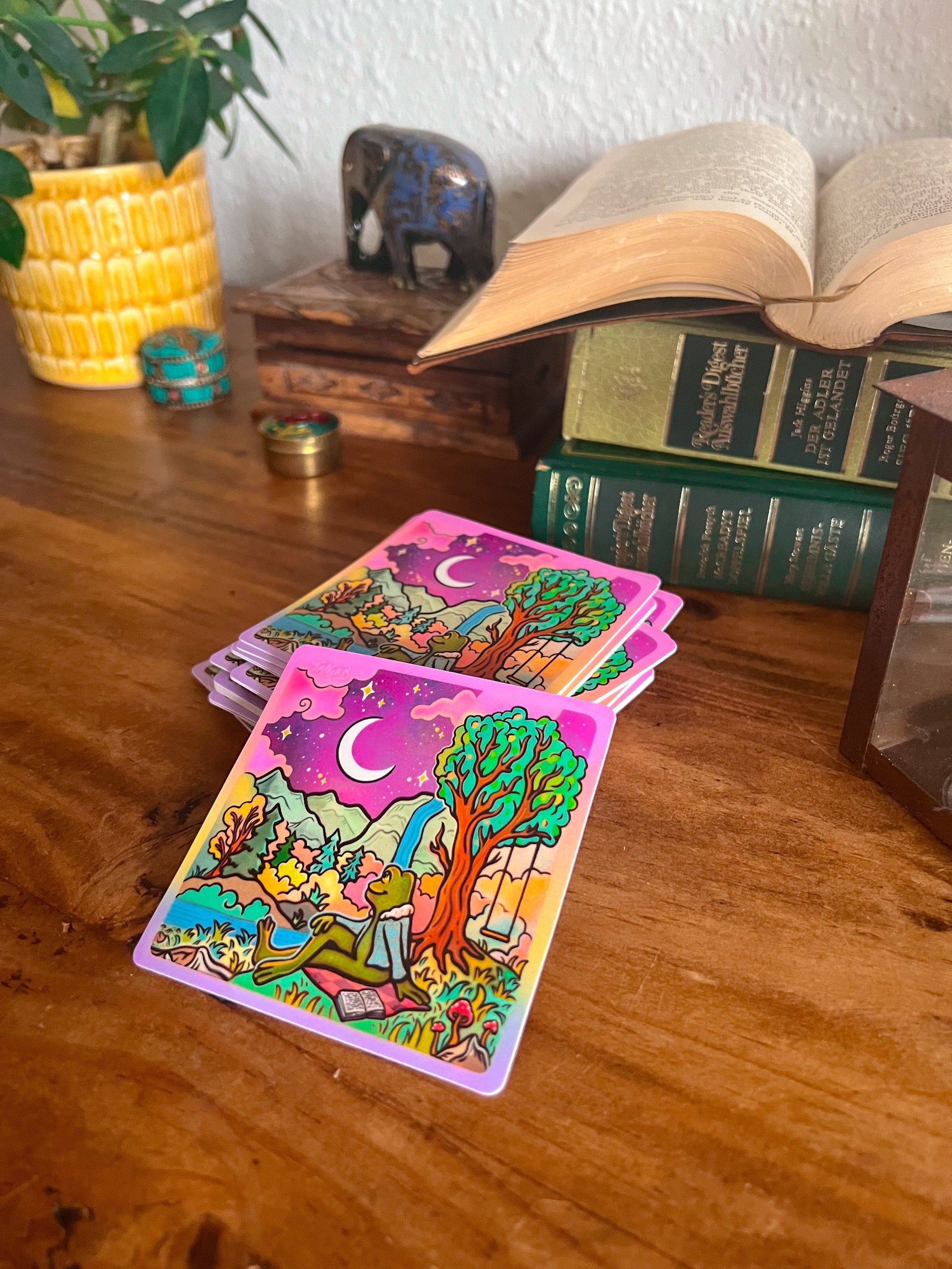 Moon Gazing Frog - Large Waterproof Sticker