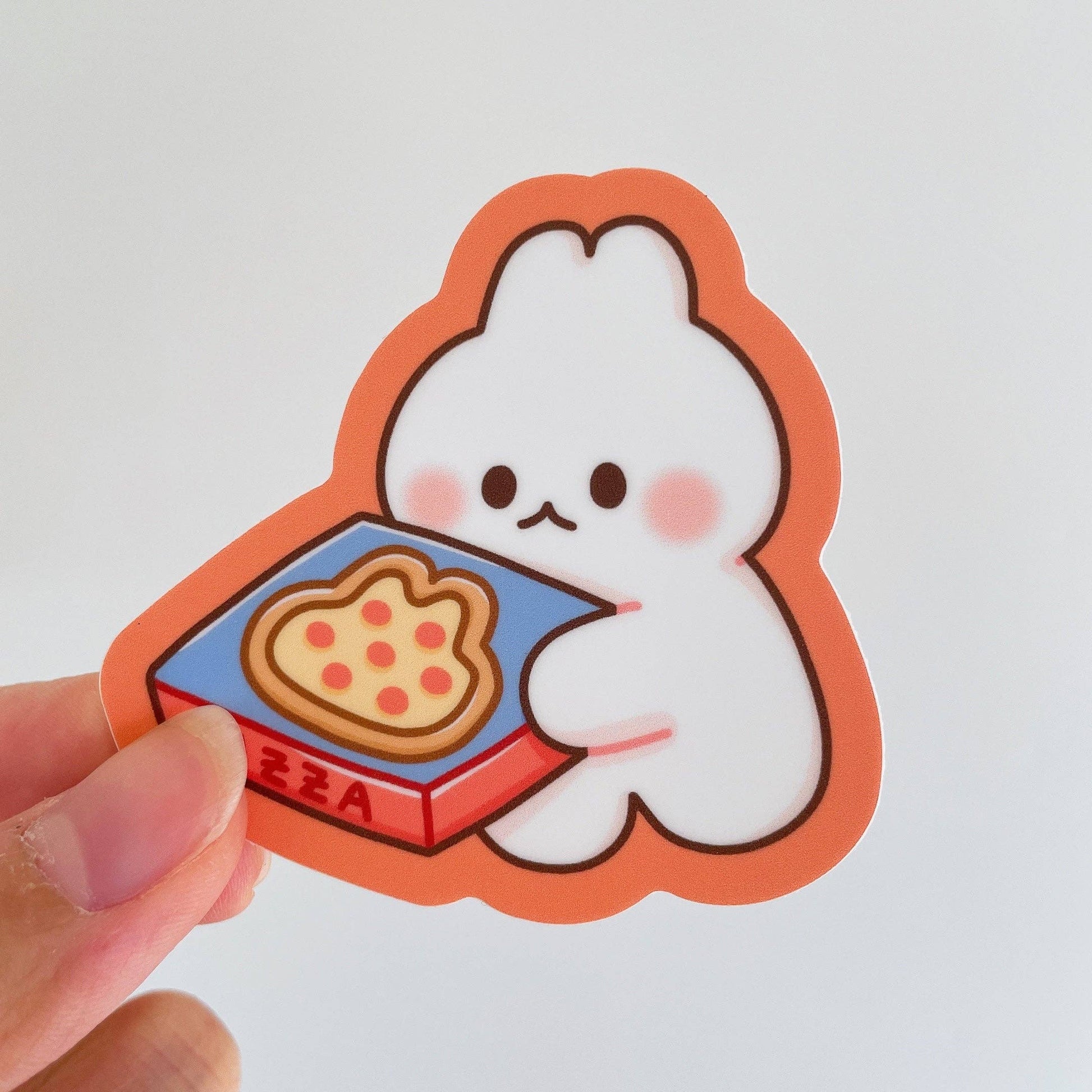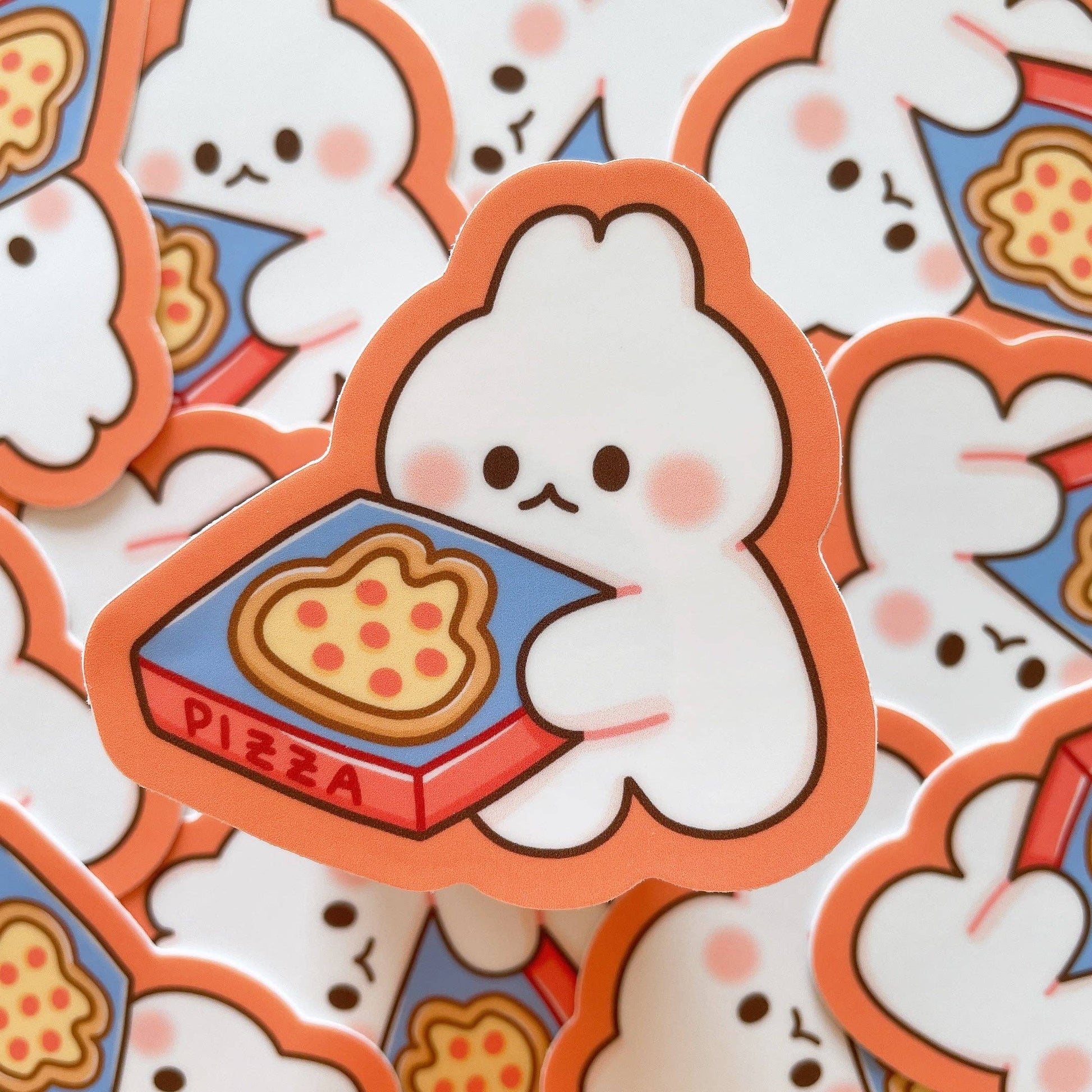 This bunny has pizza for you! These heavy duty waterproof vinyl stickers are perfect for decorating any laptop, water bottle, iPad case, notebook cover, etc!