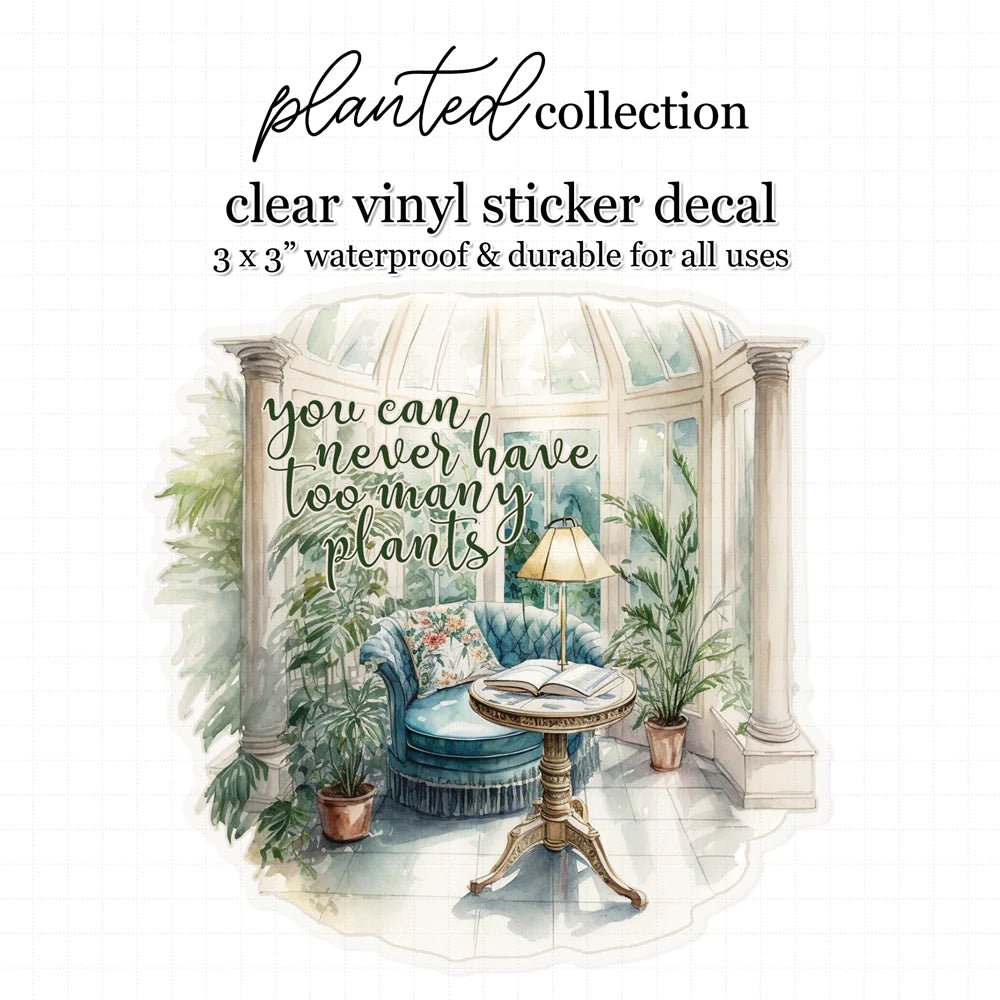 Large, 3" x 3", luxe sheer matte sticker sheet featuring coordinated Planted Collection art. All vinyl decals are waterproof and are therefore safe to place on flat, non-porous surfaces. If placing a vinyl decal on a water bottle, tumbler, or cup, we highly recommend hand washing.