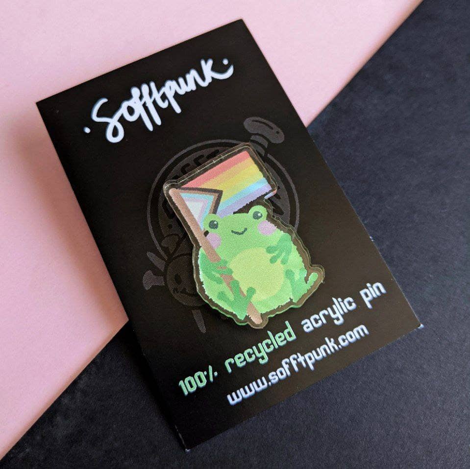 Progressive Pride Flag Frog 100% Recycled Acrylic Pin