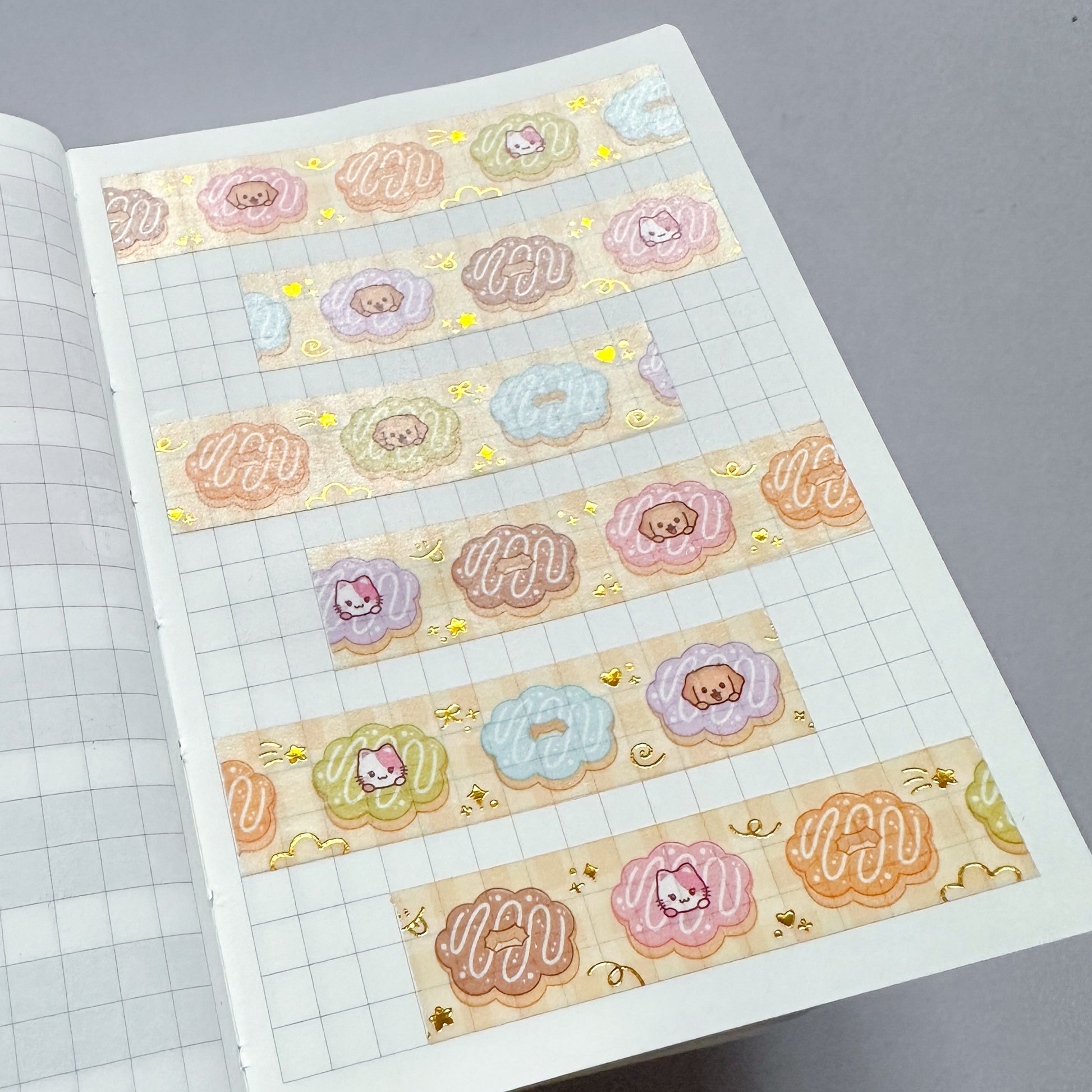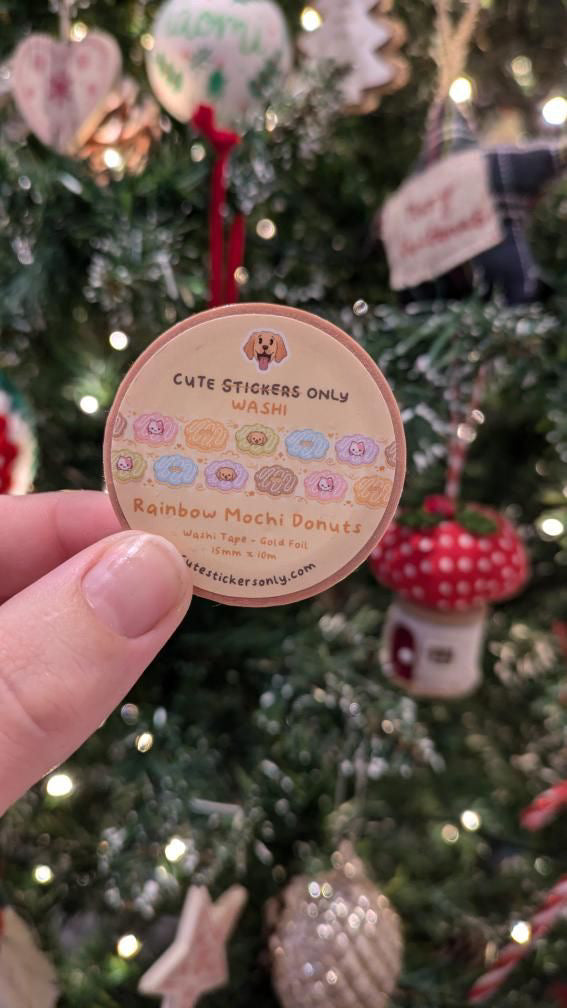 Rainbow Mochi Donuts 15mm Washi Tape with Gold Foil