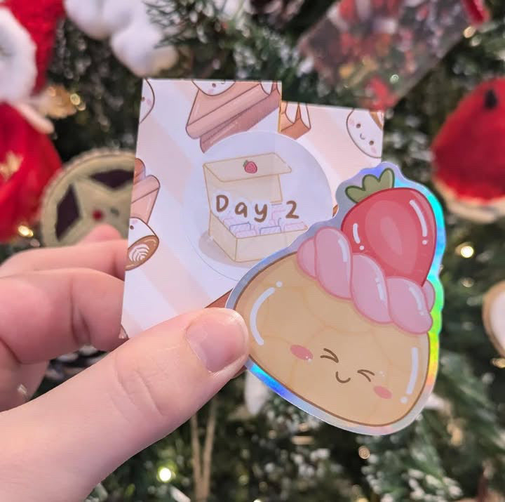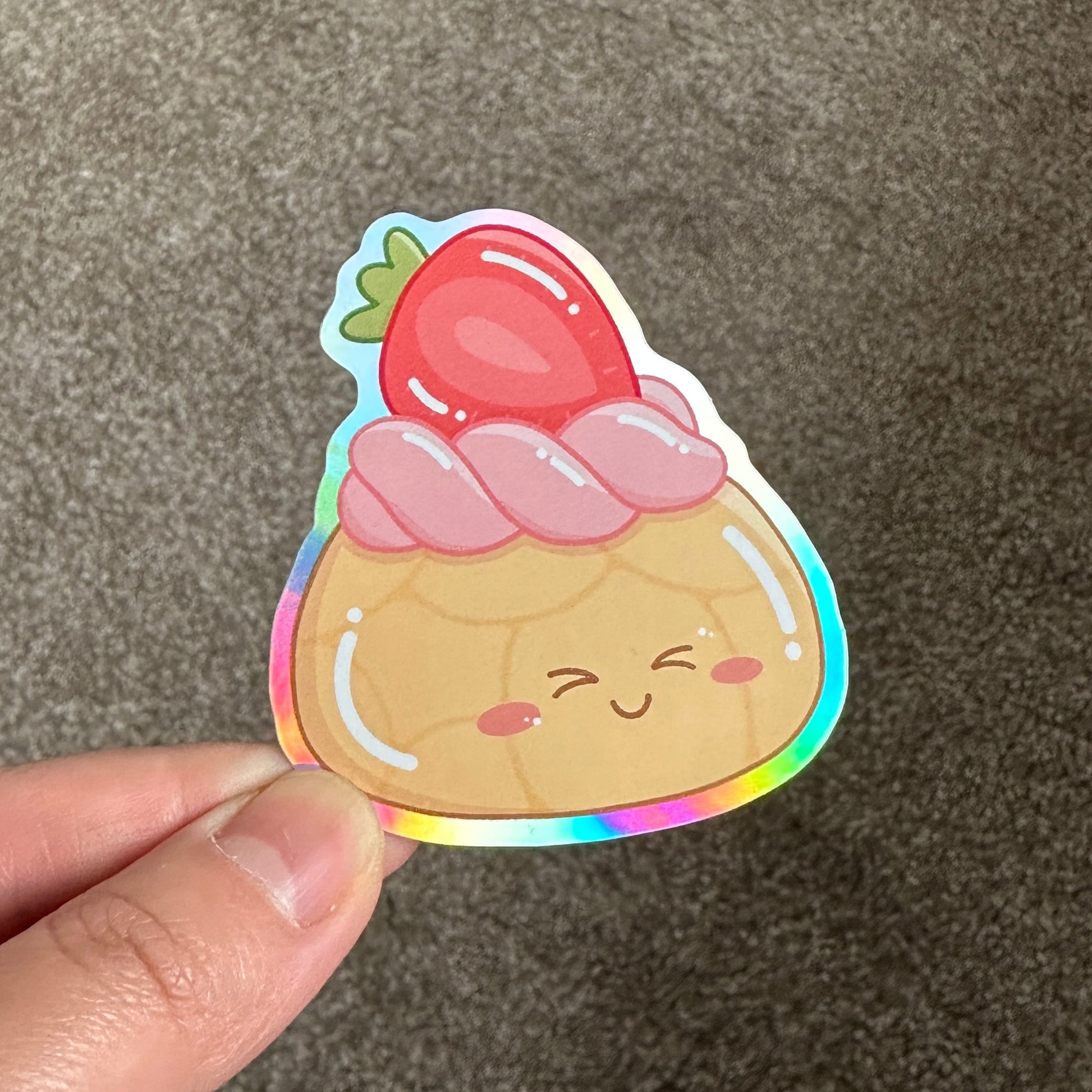 Strawberry Cream Puff Holographic Die Cut Sticker