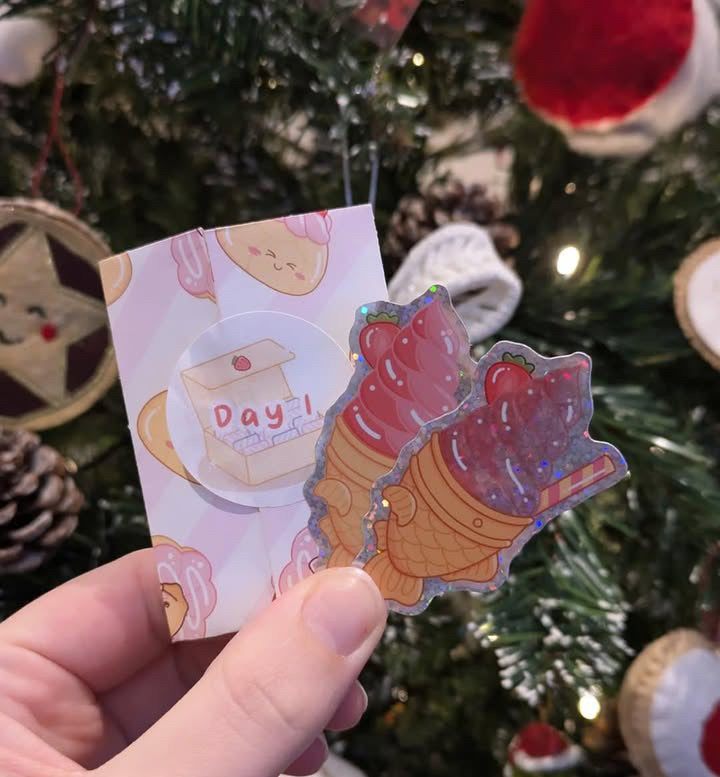 Waterproof glitter die cut sticker or matte die cut sticker.