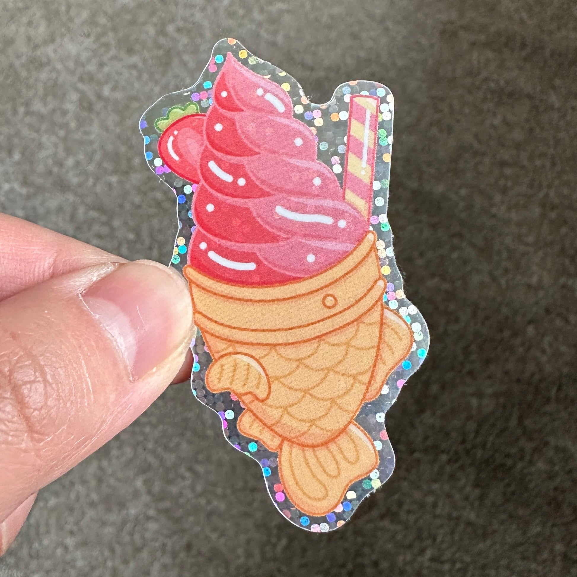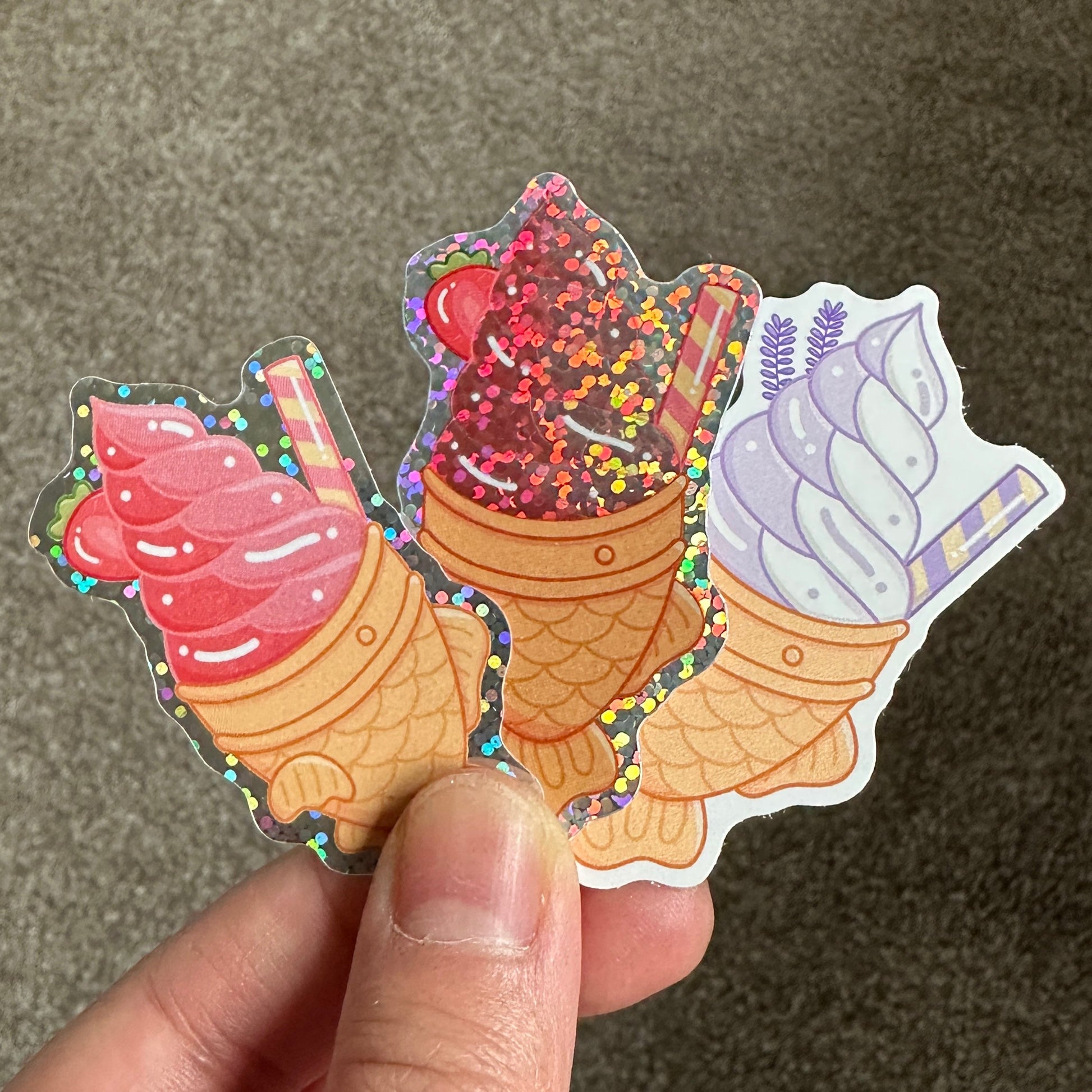 Sweet strawberry or lavender ice cream served on Japanese fish-shaped pastry.