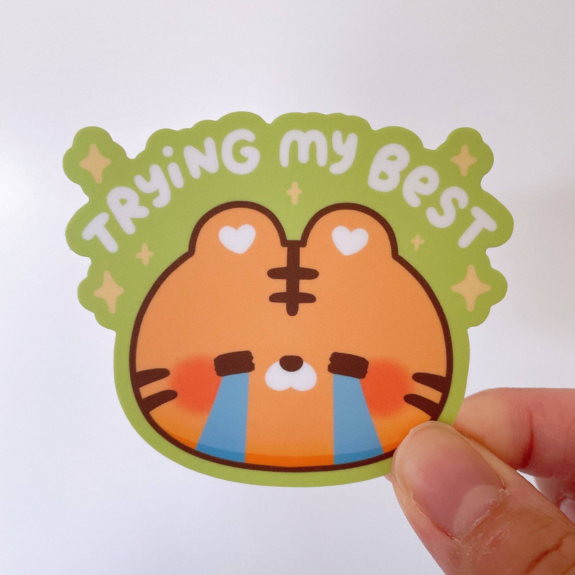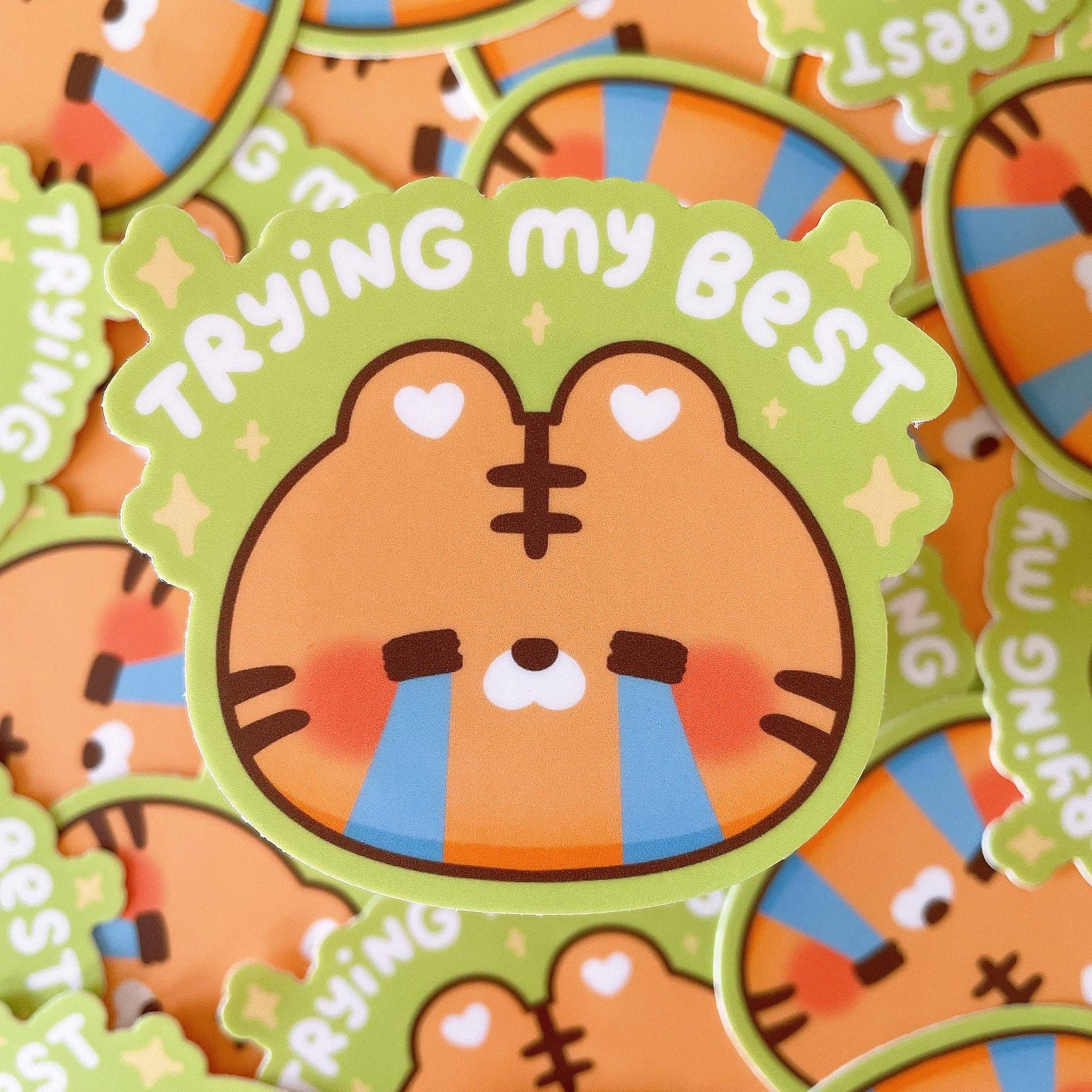 Poor tiger is just trying his best! These heavy duty waterproof vinyl stickers are perfect for decorating any laptop, water bottle, iPad case, notebook cover, etc!