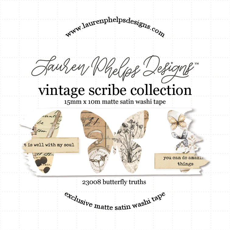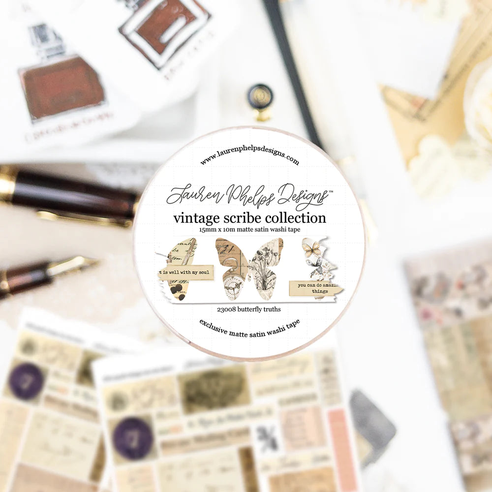 Vintage Scribe 'Butterfly Truths' Satin Washi 15mm
