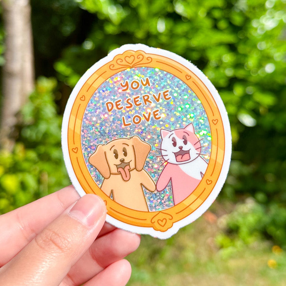 You Deserve Love - Joey and Cake Premium Glitter Die Cut Stickers